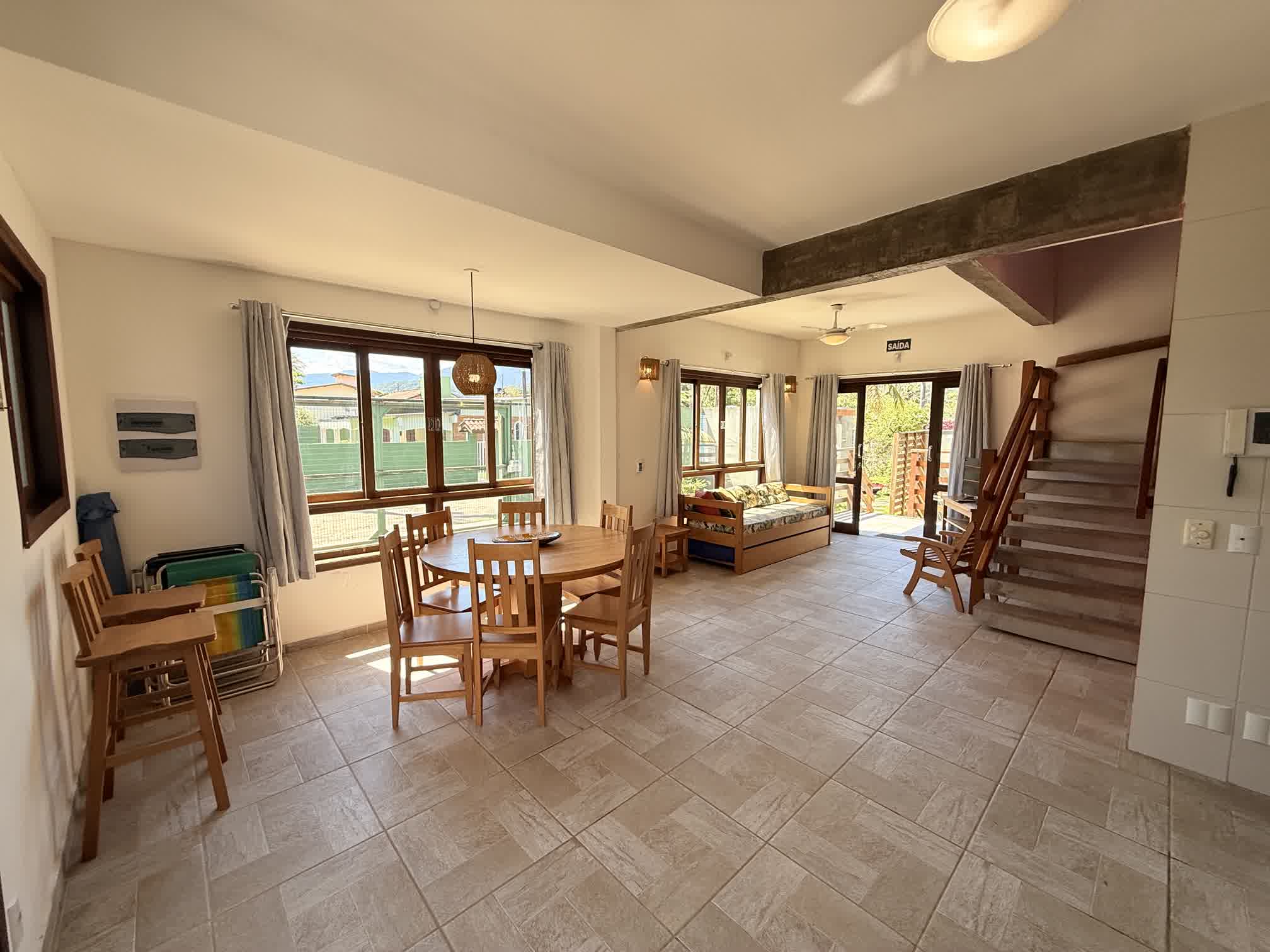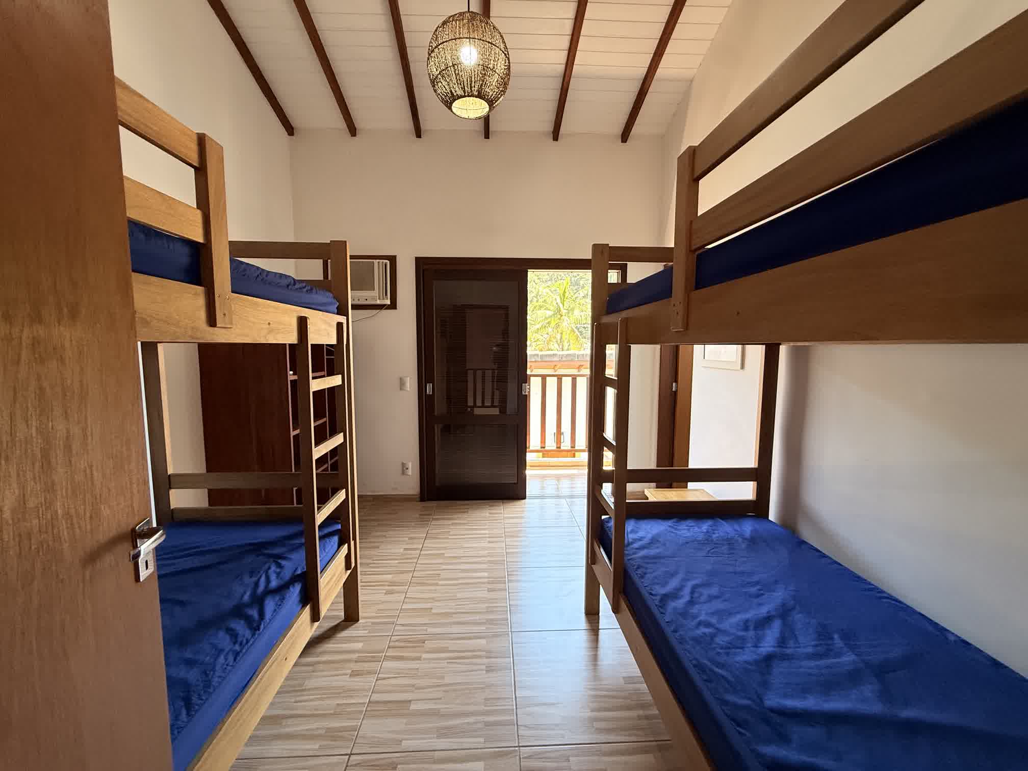 Os sobrados contam com 2 suítes com ar condicionado, sala e cozinha integradas equipadas com ventiladores de teto, lavabo, área de churrasqueira privativa. Acomodam até 8 pessoas, sendo: 1 suíte com cama de casal, 1 suíte com 2 beliches e 1 sofá bicama na sala.