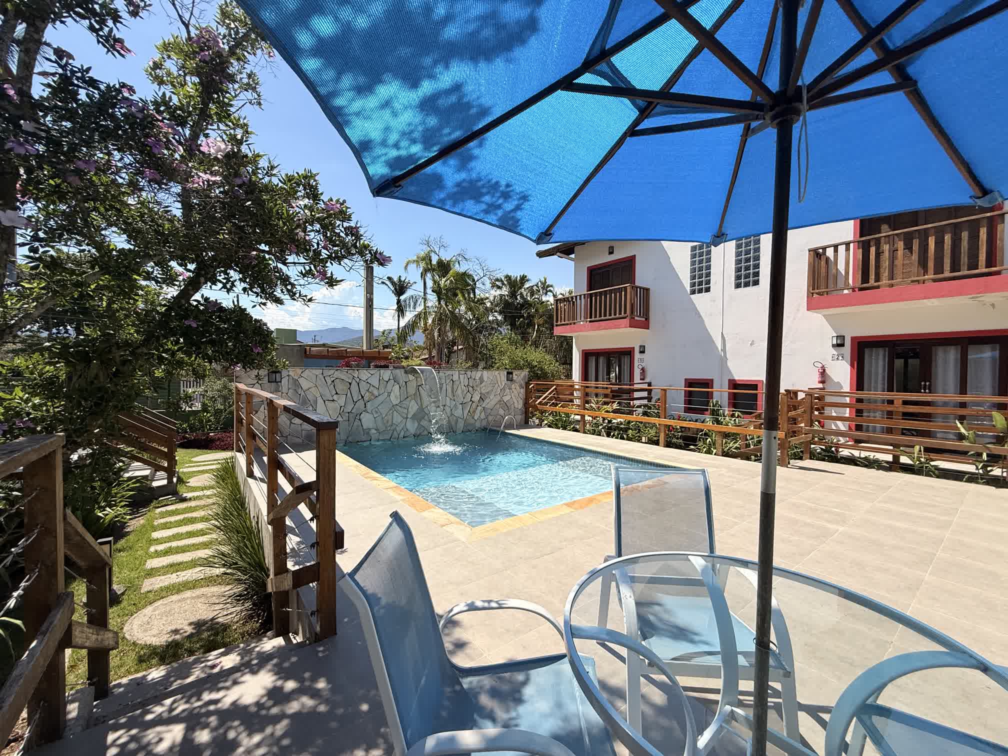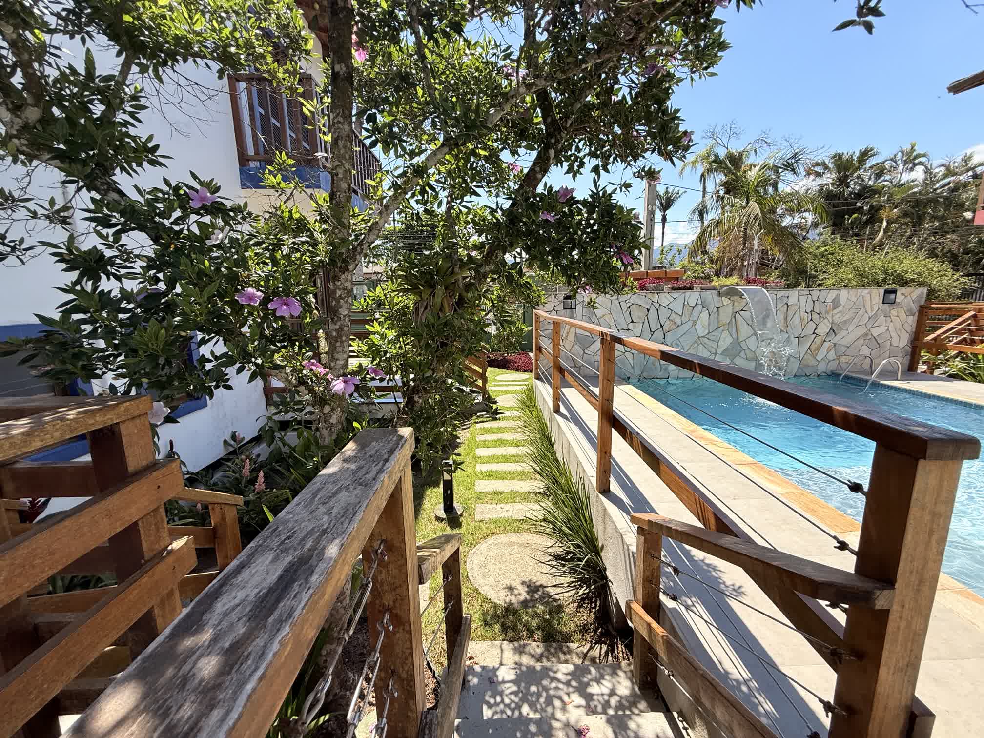 🔸 Deck com piscina e cascata